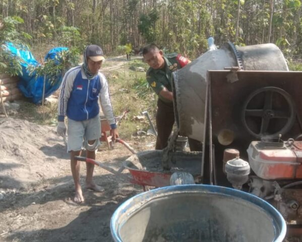 Jateng, Sragen – Sertu Suyono Babinsa Desa Kebonromo Koramil 07/Ngrampal Kodim 0725/Sragen bersama Masyarakat sangat antusias dalam pembangunan jalan yang di cor beton penghubung antara sawah – makam dan perkampungan Dukuh Tanggulangin RT 03/ RW 04, Desa Kebonromo, Kecamatan Ngrampal, Rabu (15/11/2023)