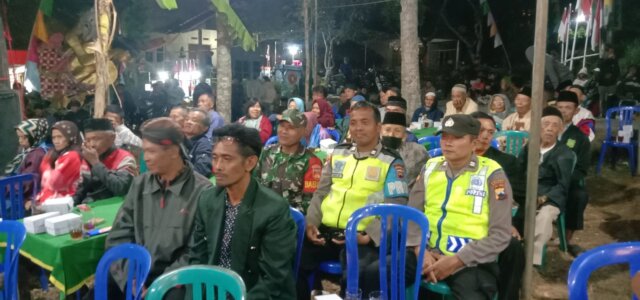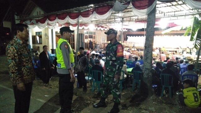 Jateng, Boyolali – Babinsa Koramil 12/Simo Kodim 0724/Boyolali Sertu Supardi bersama Babinkamtibmas Polsek Simo melaksanakan pengamanan Pagelaran Wayang Kulit yang bertempat di Desa Pentur Kecamatan Simo Kabupaten Boyolali. Minggu, malam (12/11/23).