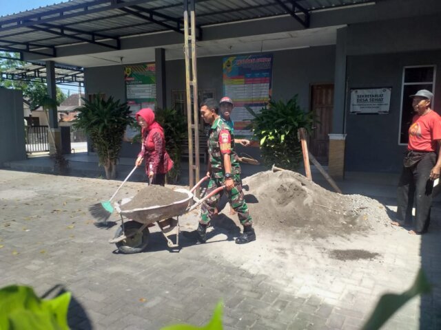 Jateng, Sragen – Dalam rangka menjaga kebersihan dan kesehatan lingkungan Kantor Desa, Babinsa Desa Genengduwur melaksanakan membantu perangkat desa karya bakti pembersihan Kantor Desa Genengduwur, Kecamatan Gemolong, Rabu (15/11/2023).