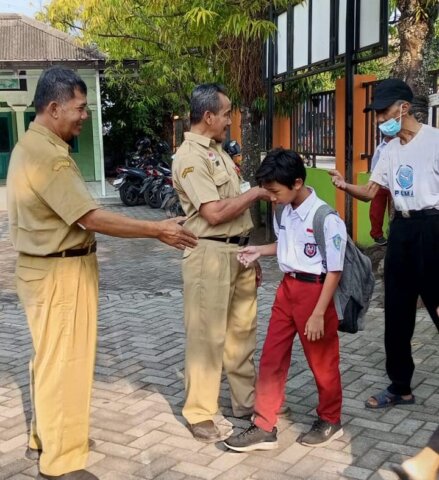 Pasalnya, nampak Ibu Mutasaroh S.pd selaku Kepala Sekolah SDN 02 Sembungharjo didampingi para guru pengajar telah menyambut di pintu gerbang Sekolah dan mendokumentasikan satu persatu para orang tua yang mengantar putra putrinya untuk masuk kedalam kelas.